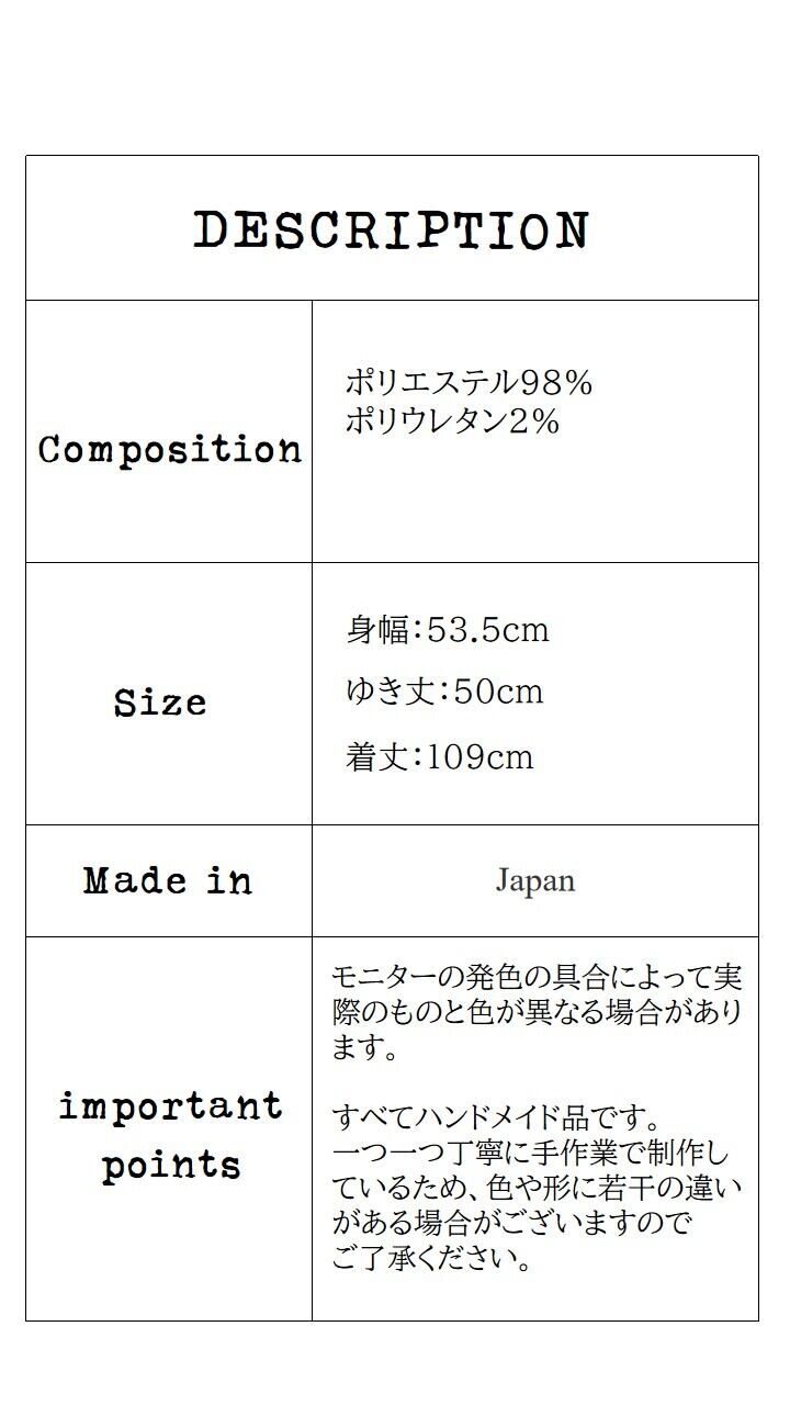 スカーフのようなディテールがついたデザインです。 サイドはドレープと裾に向かって細くなっている形です。 半袖、深めのスリットが入った裾はロング丈です。 天然繊維を思わせる風合いも持ちながら、シワになりにくいイージーケア性とストレッチ性による着心地の良さを持つテキスタイルです。