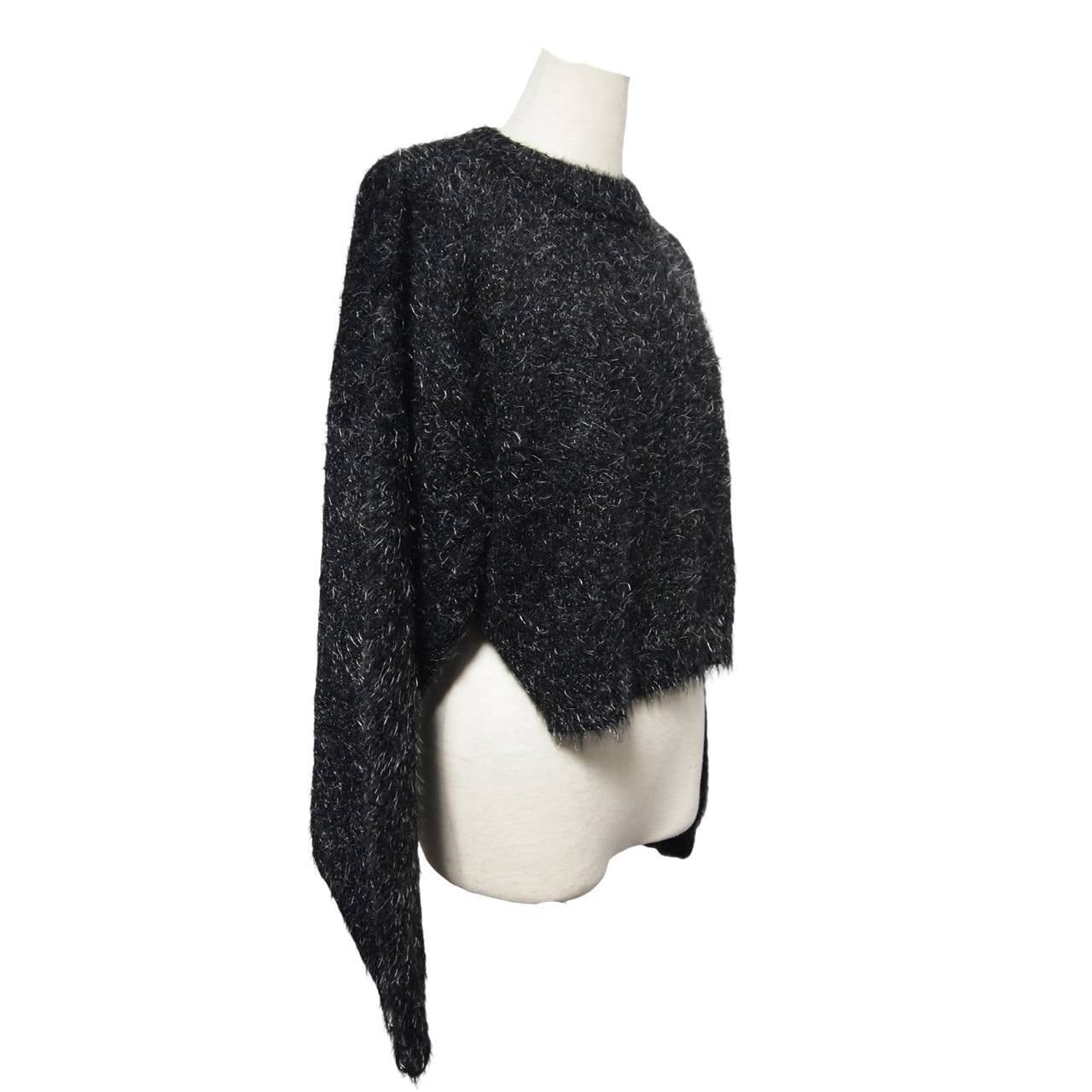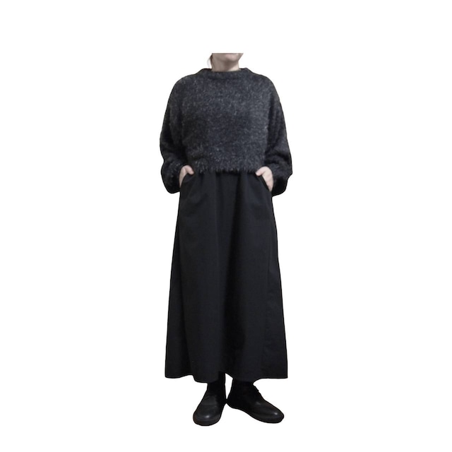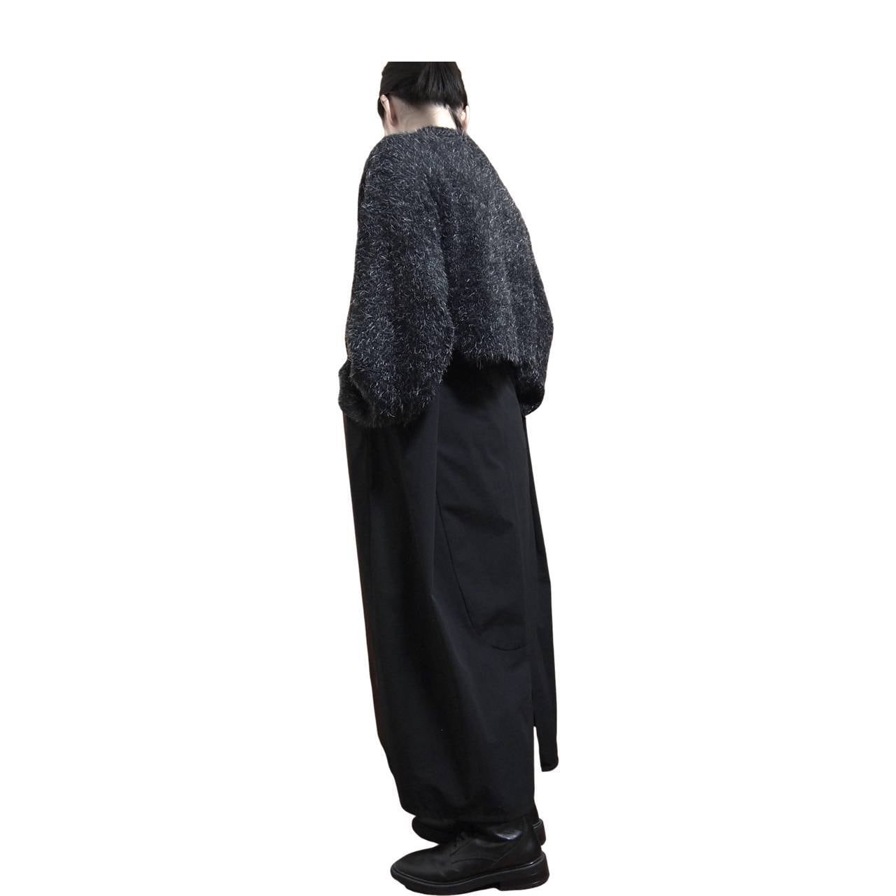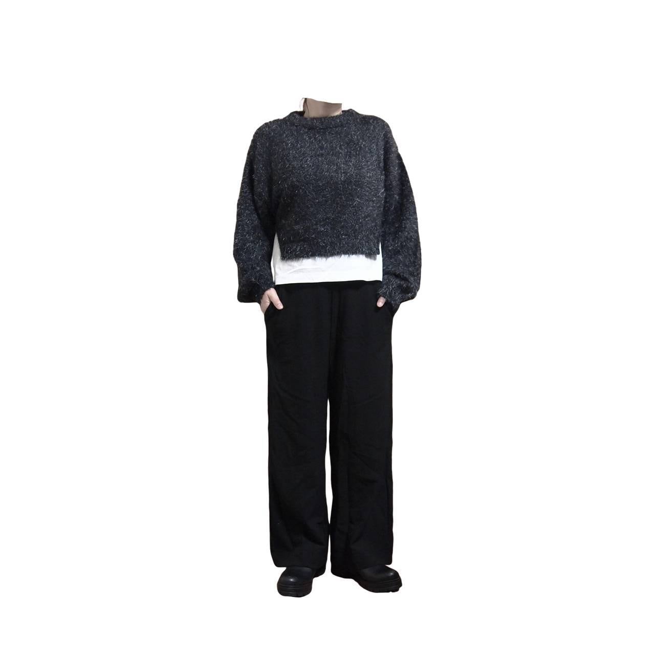 クロップド丈、長めのスリーブがスタイリングのアクセントになるニット。